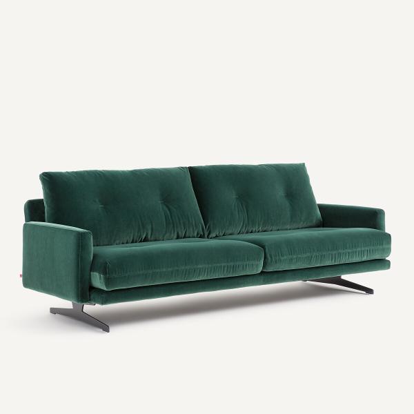Ligne contemporaine et élégante. Aérien grâce à son piètement métal, Delicato est un canapé dont le trait distinctif réside dans l'originalité de son profil : ses accoudoirs sont en retrait sur l’avant, et découpés à l’arrière.Ses coussins capitonnés invitent au bien-être. Ce canapé fabriqué en Italie et signé AMPM donne du caractère à l'espace qui l'entoure.