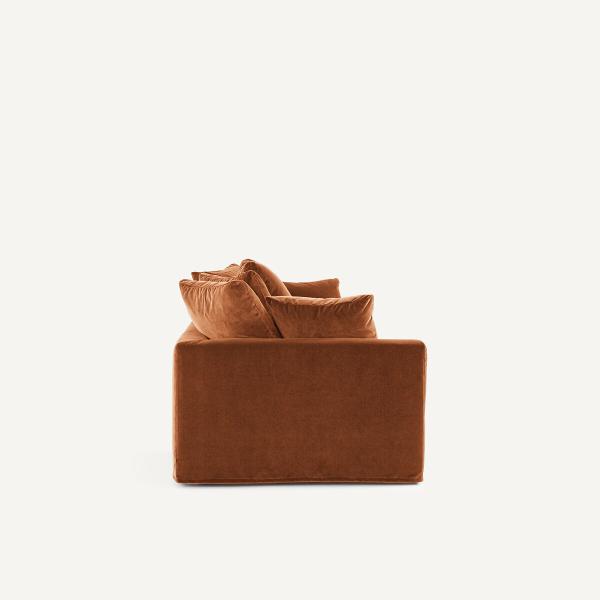 - Dossier (4 coussins pour le 3 places, 5 coussins pour le 4 places) : plumes d’oie, fibre polyester et flocons de polyuréthane