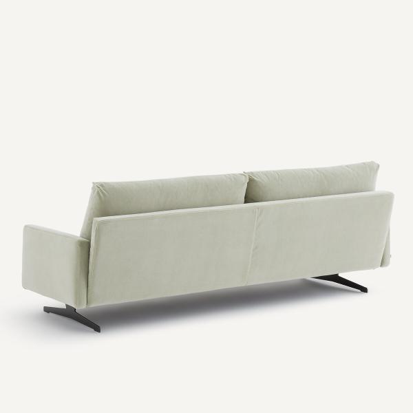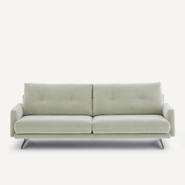 Ligne contemporaine et élégante. Aérien grâce à son piètement métal, Delicato est un canapé dont le trait distinctif réside dans l'originalité de son profil : ses accoudoirs sont en retrait sur l’avant, et découpés à l’arrière.Ses coussins capitonnés invitent au bien-être. Ce canapé fabriqué en Italie et signé AMPM donne du caractère à l'espace qui l'entoure.