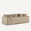 - Dossier (4 coussins pour le 3 places, 5 coussins pour le 4 places) : plumes d’oie, fibre polyester et flocons de polyuréthane