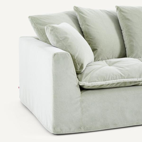 Canapé en velours stonewashed, OTAVIA Vert amande 3P