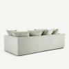 - Dossier (4 coussins pour le 3 places, 5 coussins pour le 4 places) : plumes d’oie, fibre polyester et flocons de polyuréthane
