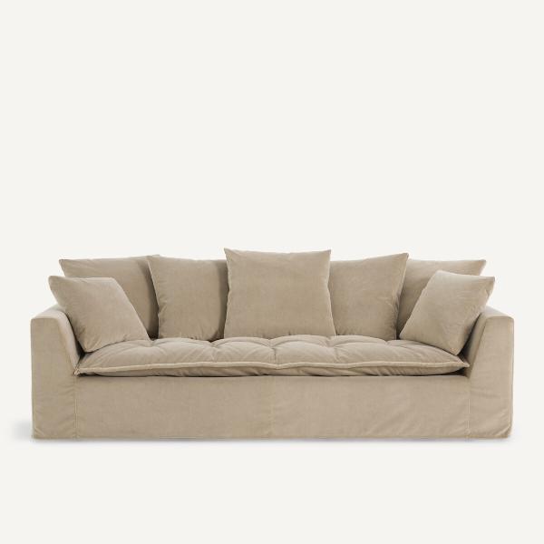 Ce canapé accueillant et moelleux est né d’un idéal de bien-être, inspiré par les sofas des maisons de vacances. Ses multiples coussins créent une sensation d’enveloppement et de douceur.Son design intemporel a été subtilement revisité avec une profondeur XL et un coussin d’assise en un seul tenant, comme un futon douillet. Signé AMPM, le canapé Otavia est fabriqué en Italie.