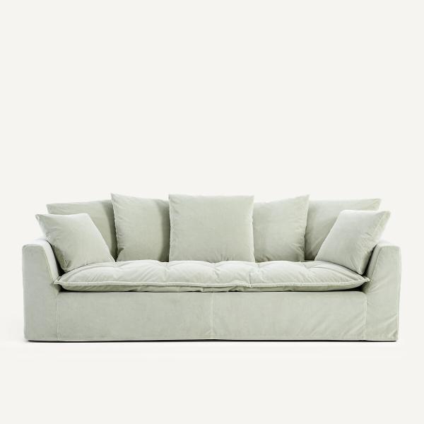 Canapé en velours stonewashed, OTAVIA Vert amande 4P