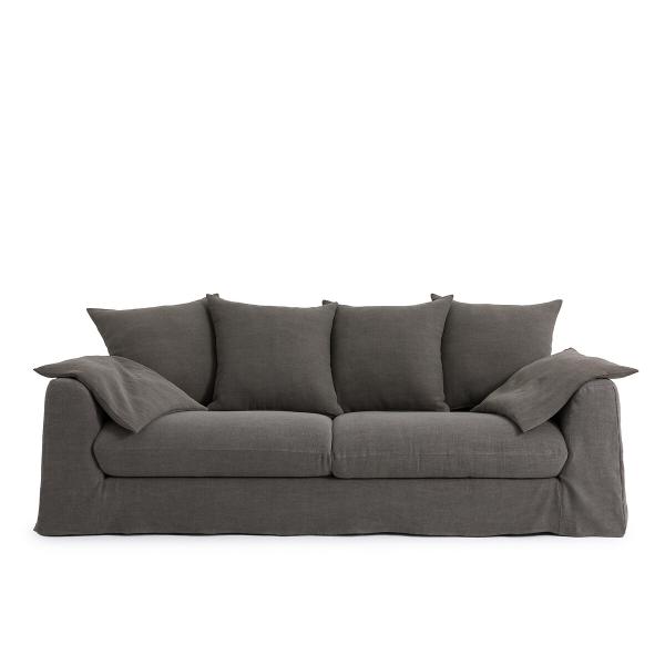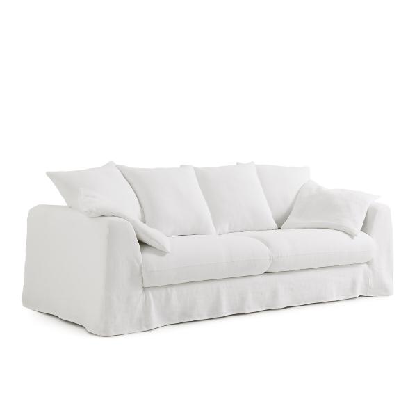 Canapé lin épais stonewashed, Marcoli Blanc optique 4P