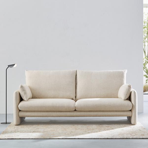 Création de nos designers, Luciano se distingue par sa silhouette épurée, contemporaine, conjuguant arrondis et lignes droites. Ses coussins, garnis d’un mélange de mousse polyuréthane et de plumes, invitent à la détente et assurent un confort absolu. Design intemporel, matériaux durables, assise généreuse... ce canapé reflète l'art de vivre AMPM. Fabriqué en Italie.