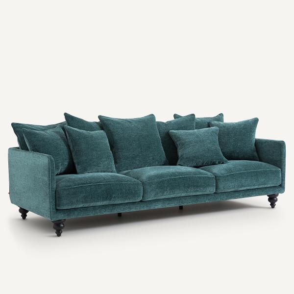 Canapé polyester recyclé, Lazare Bleu pétrole 4P