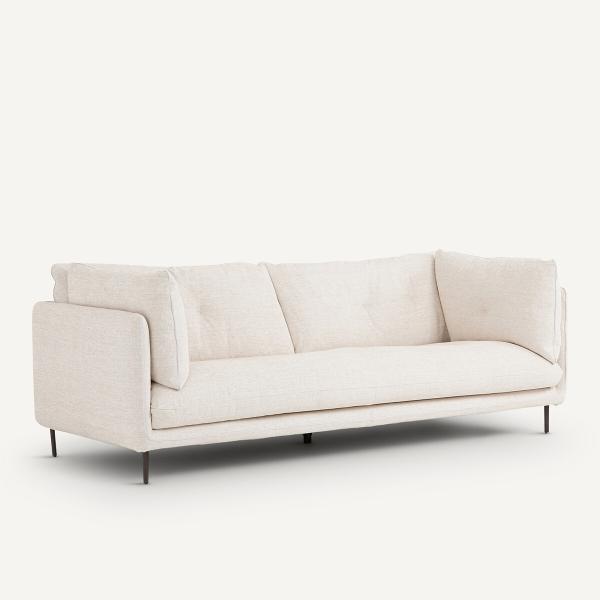 Une sophistication informelle. De grands coussins épais et moelleux enveloppent l'assise de ce canapé aux lignes douces et fluides. Pour un confort extrême.Sa structure élancée et ses pieds fins allongent sa silhouette : une allure tout en légèreté, presque aérienne. Un esprit contemporain, avec une touche d’élégance, accentuée par l’effet capitonné des coussins. Signé AMPM, le canapé Botero est fabriqué en Italie.