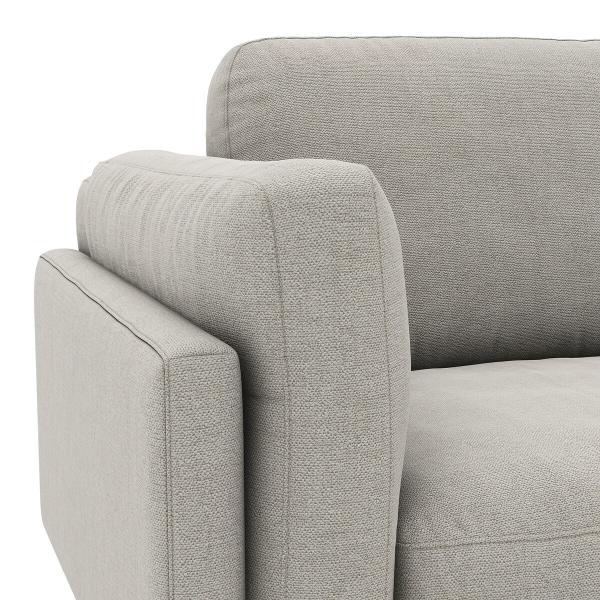- Coussin d’accoudoir (2 coussins) : fibres polyester et flocons de mousse polyuréthane et bloc de mousse polyuréthane 40 kg/m3