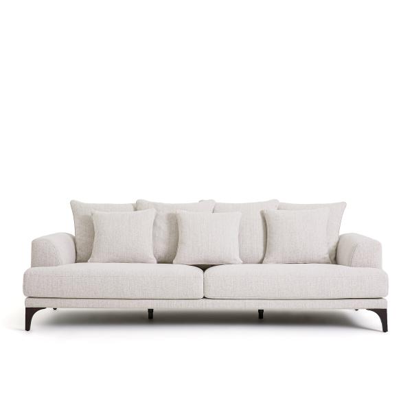 - Coussins d’appoint (2 coussins pour le 3 places, 3 coussins pour le 4 places) : plume d’oie et fibre polyester.