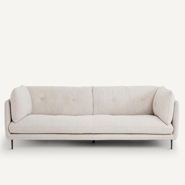 Une sophistication informelle. De grands coussins épais et moelleux enveloppent l'assise de ce canapé aux lignes douces et fluides. Pour un confort extrême.Sa structure élancée et ses pieds fins allongent sa silhouette : une allure tout en légèreté, presque aérienne. Un esprit contemporain, avec une touche d’élégance, accentuée par l’effet capitonné des coussins. Signé AMPM, le canapé Botero est fabriqué en Italie.