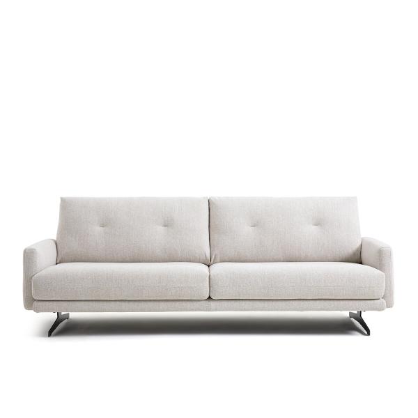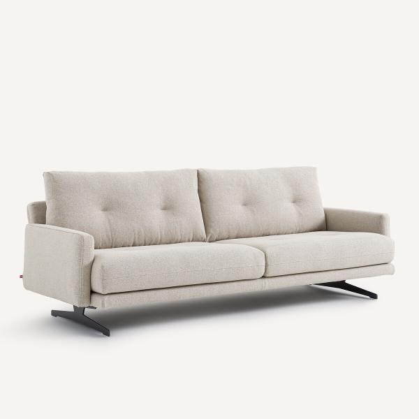 Ligne contemporaine et élégante. Aérien grâce à son piètement en acier, Delicato est un canapé dont le trait distinctif réside dans l'originalité de son profil : ses accoudoirs sont en retrait sur l’avant, et découpés à l’arrière.Ses coussins capitonnés invitent au bien-être. Ce canapé fabriqué en Italie et signé AMPM donne du caractère à l'espace qui l'entoure.