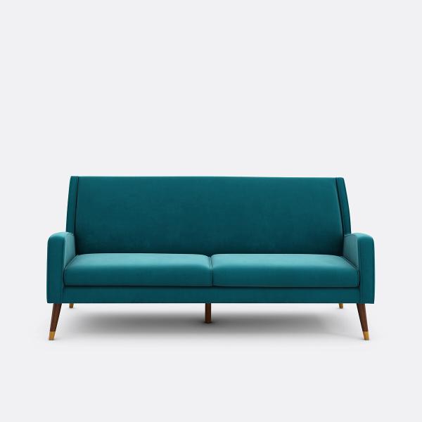 Le canapé (Y) 3 places : des lignes simples, des pointes de pieds finition laiton, un revêtement souligné par un piping chic et délicat...Entrez dans l'univers design et créatif emprunté au monde esthétique de l'Art Déco !