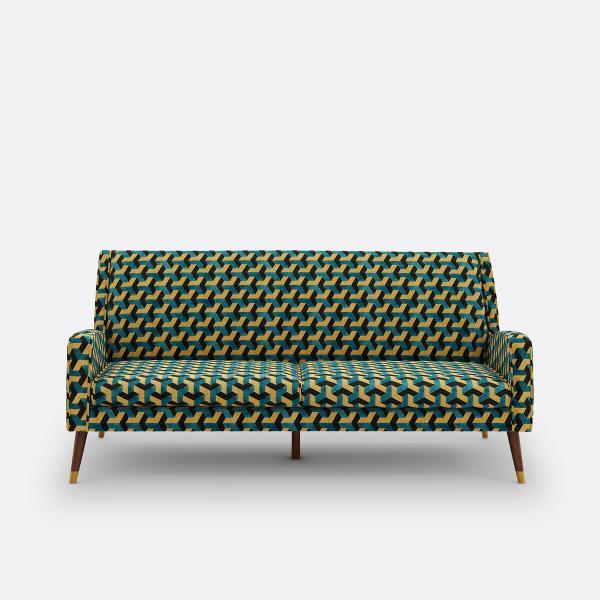 Canapé velours 3 places, (Y) Motif bleu/jaune 3P
