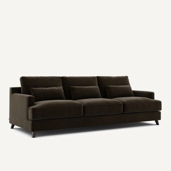 Un canapé à la ligne contemporaine, soulignée d’un passepoil qui lui donne beaucoup d’élégance. À apprécier pour son confort moelleux... Fabriqué en Italie.