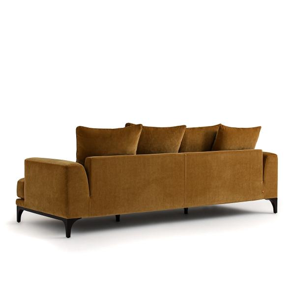 - Coussins d’appoint (2 coussins pour le 3 places, 3 coussins pour le 4 places) : plume d’oie et fibre polyester.