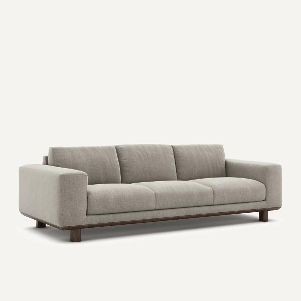 Larges accoudoirs, proportions généreuses, Cerea est un éloge de la simplicité et de la sobriété. Sa particularité : il est rehaussé du sol par une base en bois chanfreiné et des pieds en bois travaillés en demi-lune.Cerea est un canapé qui conjugue design sophistiqué et sens de l'accueil. Une création de nos designers AMPM. Fabriqué en Italie.