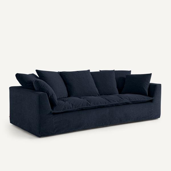Canapé velours chenille, Otavia Bleu de minuit 3P