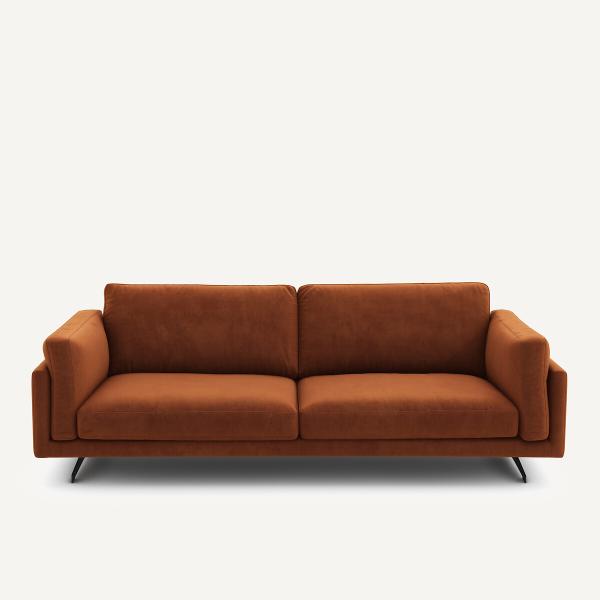 Fabrication Italienne. César, se caractérise par une ligne contemporaine, intemporelle, simple et élégante. Son coussin se dépose délicatement sur l'accoudoir et son garnissage généreux offre une grande expérience de confort.Les belles proportions et l'esthétique légère et épurée de ce canapé sont soulignées par deux pieds transversaux lui donnant l’impression de flotter dans l’air.