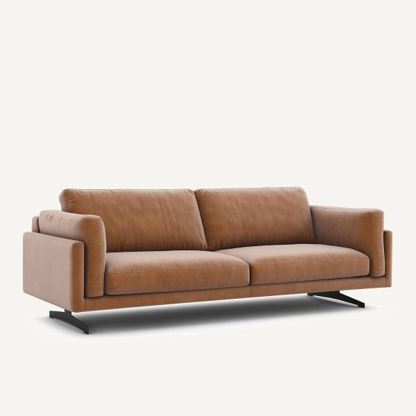 Fabrication Italienne. César, se caractérise par une ligne contemporaine, intemporelle, simple et élégante. Son coussin se dépose délicatement sur l'accoudoir et son garnissage généreux offre une grande expérience de confort.Les belles proportions et l'esthétique légère et épurée de ce canapé sont soulignées par deux pieds transversaux lui donnant l’impression de flotter dans l’air.