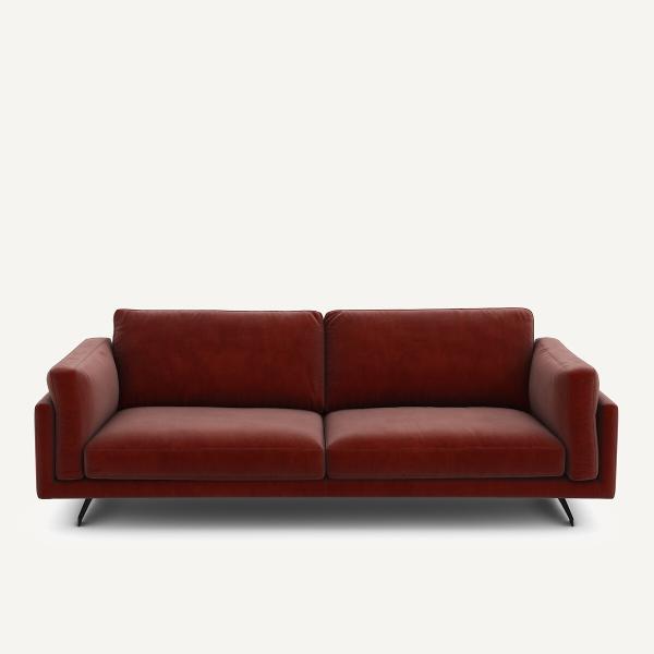 Fabrication Italienne. César, se caractérise par une ligne contemporaine, intemporelle, simple et élégante. Son coussin se dépose délicatement sur l'accoudoir et son garnissage généreux offre une grande expérience de confort.Les belles proportions et l'esthétique légère et épurée de ce canapé sont soulignées par deux pieds transversaux lui donnant l’impression de flotter dans l’air.