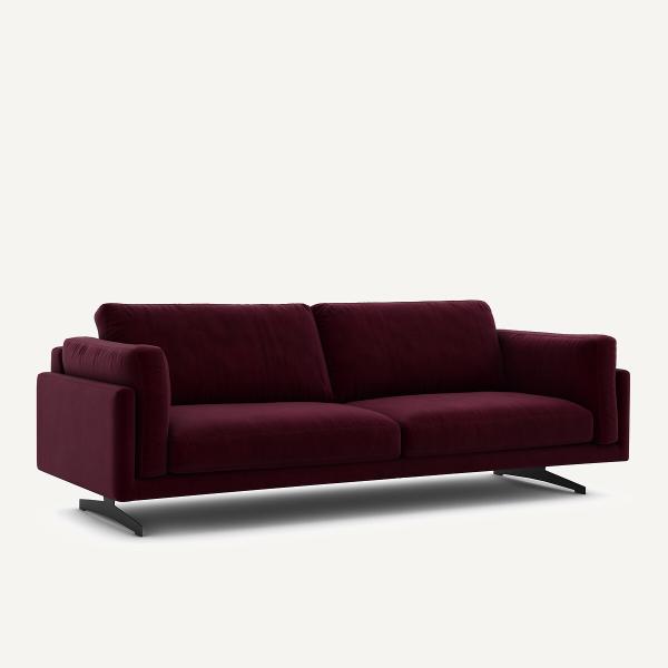 Fabrication Italienne. César, se caractérise par une ligne contemporaine, intemporelle, simple et élégante. Son coussin se dépose délicatement sur l'accoudoir et son garnissage généreux offre une grande expérience de confort.Les belles proportions et l'esthétique légère et épurée de ce canapé sont soulignées par deux pieds transversaux lui donnant l’impression de flotter dans l’air.