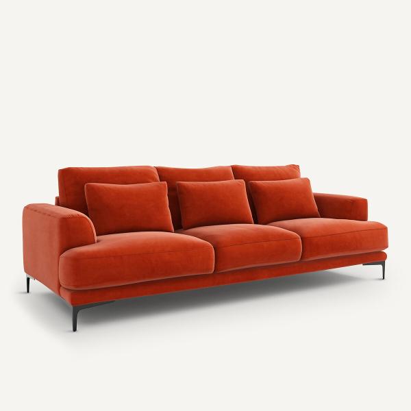 Le canapé Marsile est l’alliance parfaite d’une architecture aux proportions harmonieuses et de matériaux de grandes qualité.Détaché du sol par de fins pieds en métal verni, le canapé Marsile se distingue ses coussins d'assise marteaux et par l’opulence de ses coussins généreux et moelleux, pour créer un univers propice à la quiétude.