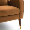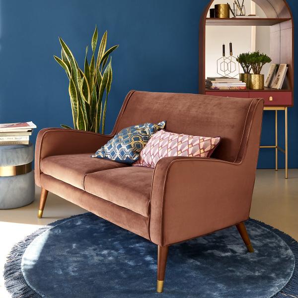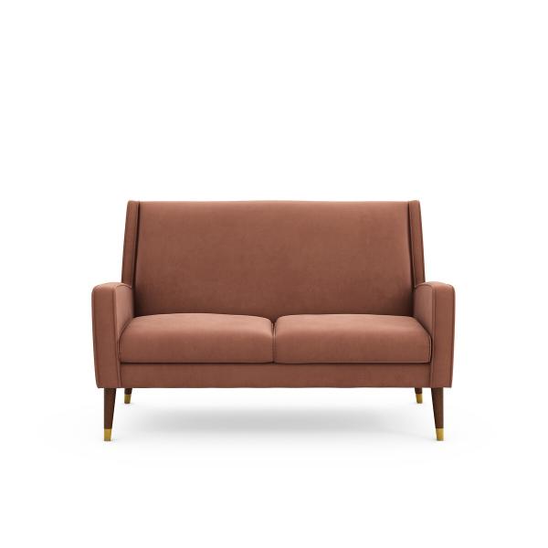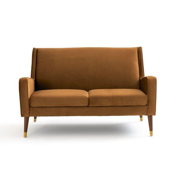 Le canapé (Y) 2 places : des lignes simples, des pointes de pieds finition laiton, un revêtement souligné par un piping chic et délicat...