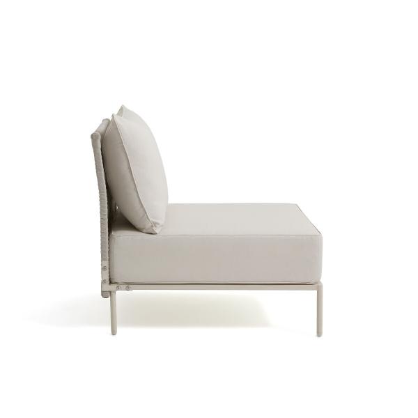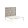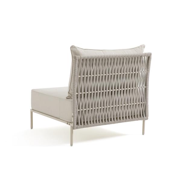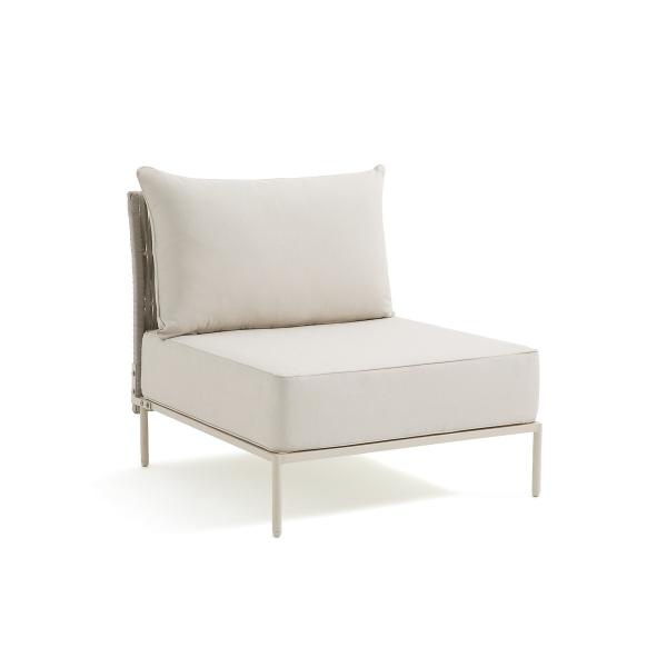 La chauffeuse outdoor Leandra. Douceur de vivre, confort et convivialité sont les maîtres mots de ce salon de jardin aux éléments réversibles (méridienne) et modulables. La structure en acier est traitée anticorrosion, dossiers et accoudoirs sont tressés de manière artisanale et les coussins d'assise et de dossier sont en toile tissée résistant aux UV. Retrouvez la méridienne assortie sur ampm.fr.