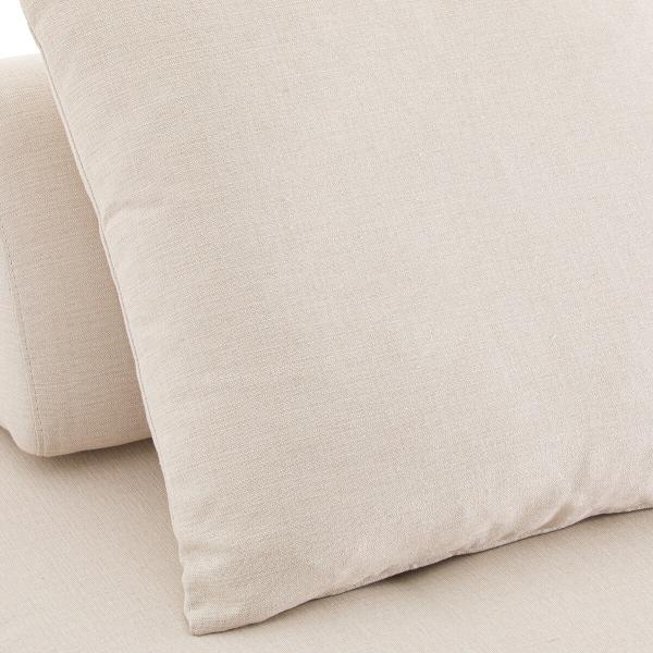 - Dossier (2 coussins) : mélange de plumes d'oie et de fibre polyester + un capiton central