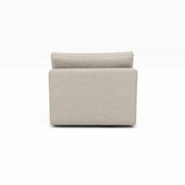 - Assise (1 coussin) : mousse polyuréthane 35 kg/m³ et flocons de fibres polyester