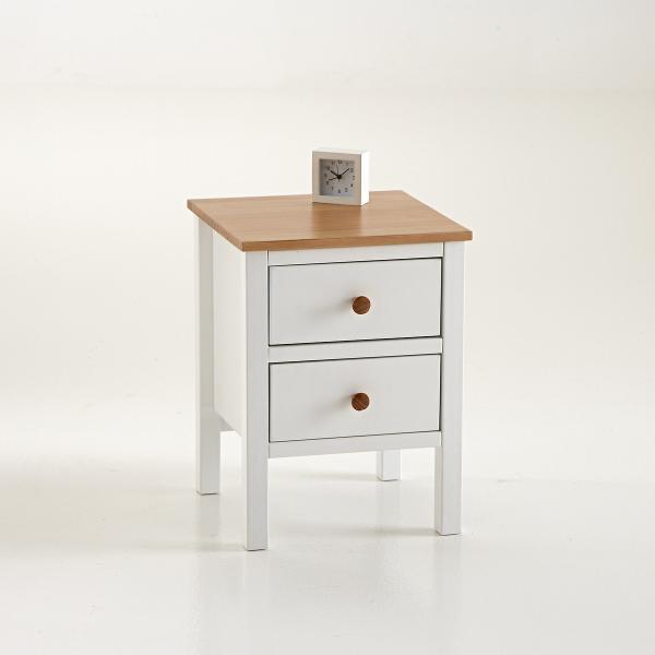 Chevet 2 tiroirs Ashin Blanc/bois T. Unique