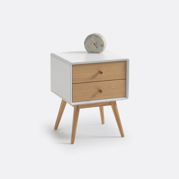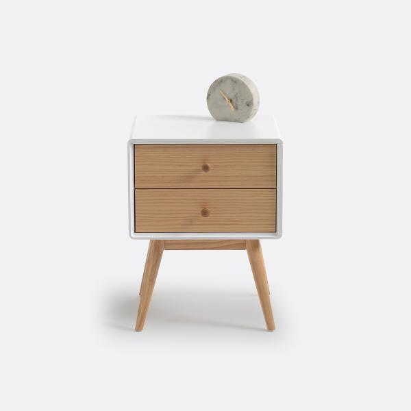 Chevet 2 tiroirs JIMI Blanc/bois T. Unique