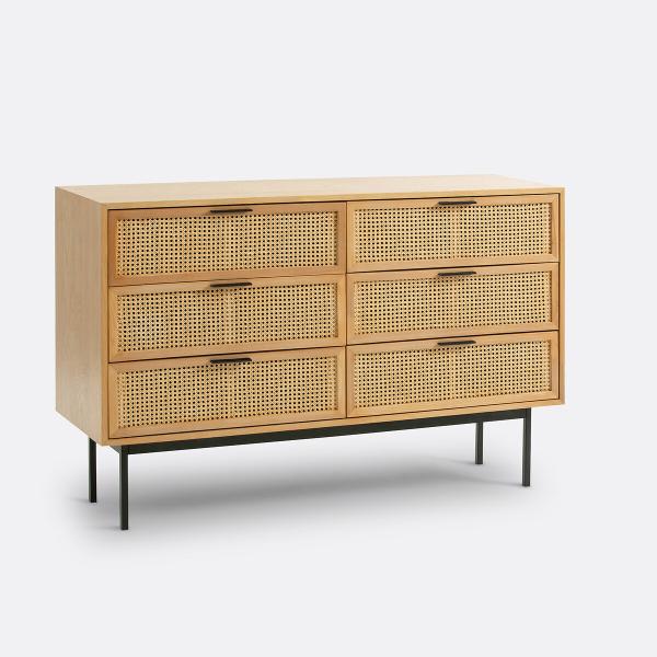 Avec ses tiroirs habillés d?un cannage en rotin, la commode Waska se distingue par ses lignes pures bien ancrées dans la tendance vintage du moment. Raffinée et élégante, c?est une pièce à métisser pour donner du caractère à votre intérieur.