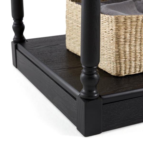 - Piètement en chêne massif, peinture noire, finition vernis nitrocellulosique