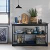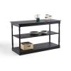 - Tablettes en MDF plaqué chêne, peinture noire, finition vernis nitrocellulosique