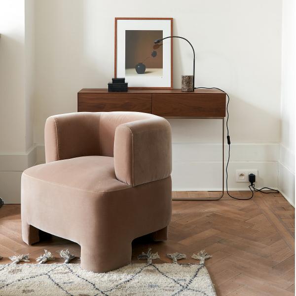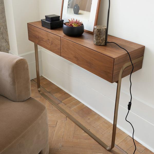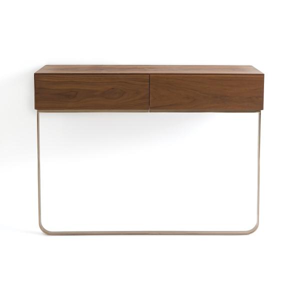 À la fois fonctionnelle et très élégante, la console Merten, dessinée par AMPM, marie vintage et modernité.Un ruban de métal coloris moka soutient en toute légèreté un caisson en MDF plaqué noyer FSC®