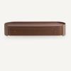 La console murale en plaqué noyer et cuir Firmo emprunte les codes des années 50 avec des courbes qui adoucissent les volumes. Sa faible profondeur et son format compact ont été étudiés pour meubler une entrée ou un couloir.Les parois gainées de cuir véritable italien offrent un contraste élégant avec le placage noyer du tiroir. Une console généreuse et fonctionnelle.