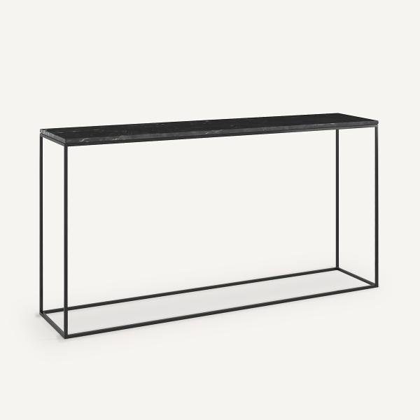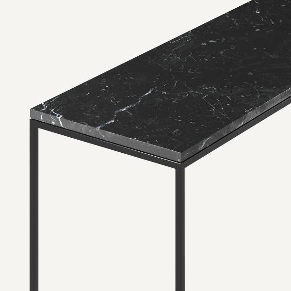 La console marbre Mahaut modèle XL. Élégance et simplicité avec la combinaison d'un plateau extra large en marbre, une pierre noble, douce et solide et d'une structure en métal très fine.