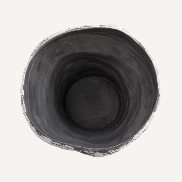 - En céramique mate noire. Un émail blanc mat est appliqué partiellement sur la surface extérieure de la coupelle