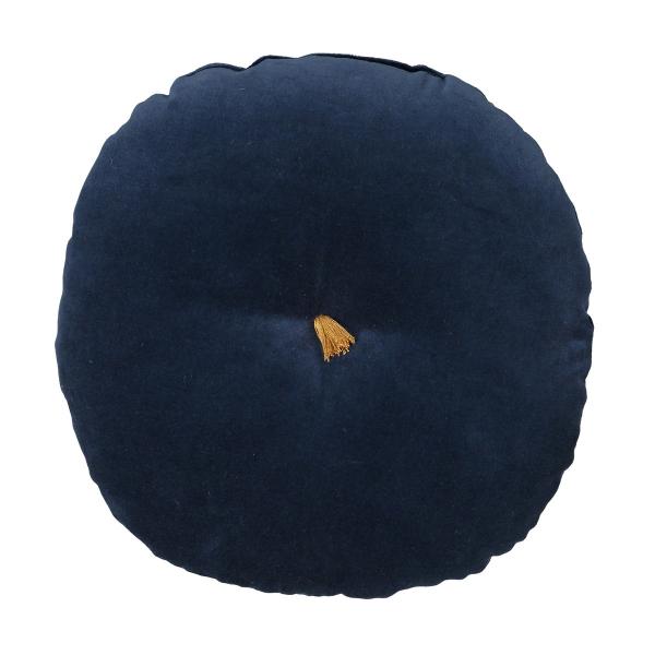 Coussin rond velours, Paula Bleu encre Diam 35cm