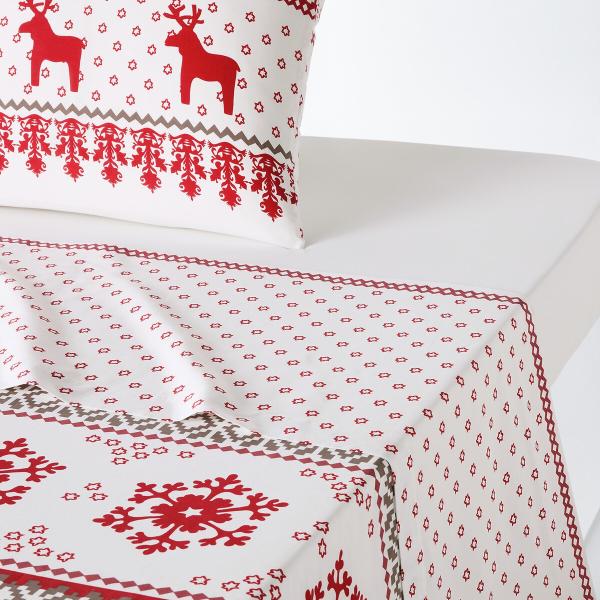 Drap coton, Ovelis Rouge/gris 270x290 cm