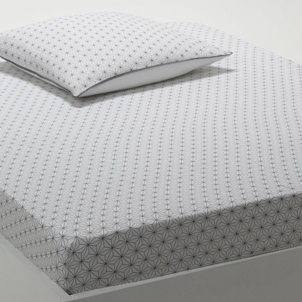 Drap housse coton, Nordic Blanc/noir 180x200 cm