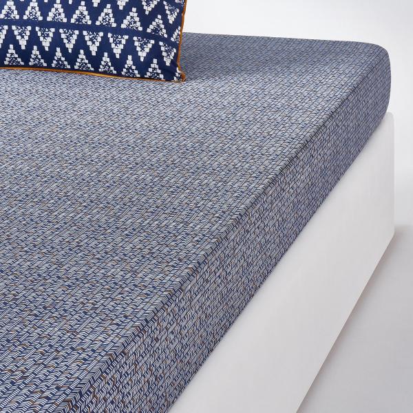 Drap housse coton, Popayan Imprimé bleu/gris 180x200 cm