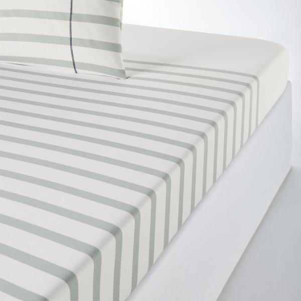 Drap housse pur coton, Malo Blanc/gris 160x200 cm