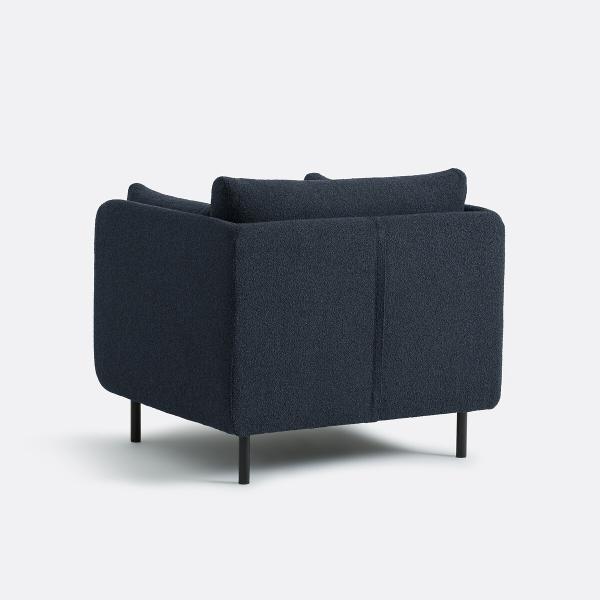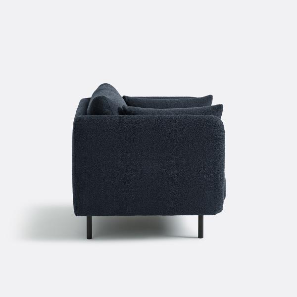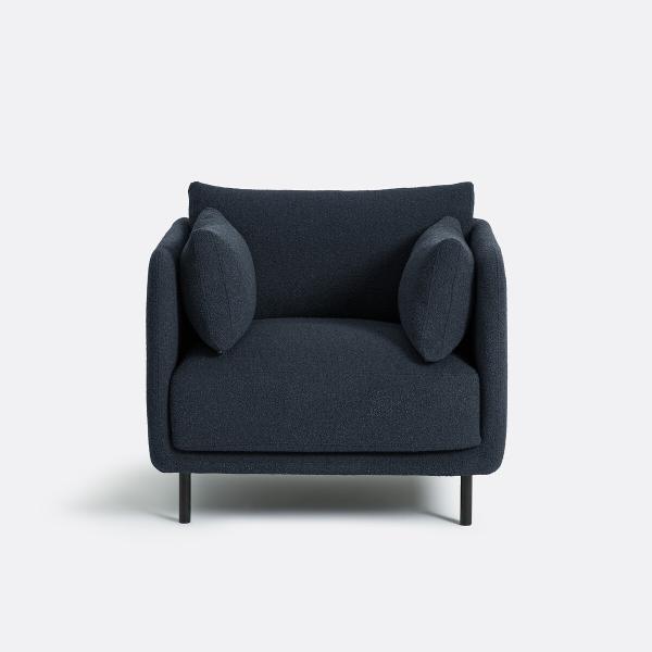 Hyper confortable, ce fauteuil aux lignes contemporaines associe une structure fine et des pieds en métal à une assise super moelleuse avec de gros coussins accueillants et un nouveau revêtement en bouclette fine. Fabrication française.