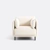 Hyper confortable, ce fauteuil aux lignes contemporaines associe une structure fine et des pieds en métal à une assise super moelleuse avec de gros coussins accueillants et un nouveau revêtement en bouclette fine. Fabrication française.