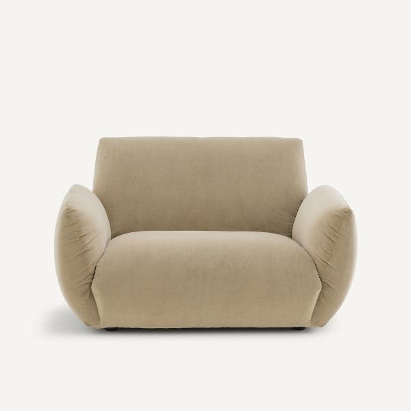 Doux et enveloppant. Spogano se démarque par une assise au ras du sol et des proportions généreuses. Ses lignes rassurantes et son rembourrage ultra confortable en font un fauteuil totalement dédié au bien-être. L'art de vivre signé AMPM.Confort d'assise : équilibré