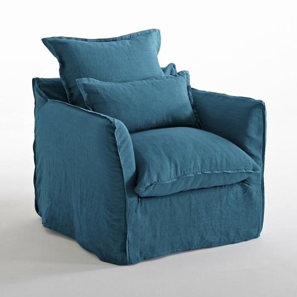Fauteuil lin froissé, bultex, Odna Bleu paon 1P