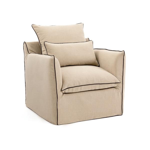 Fauteuil lin épais, bultex, Odna Blanc/noir 1P